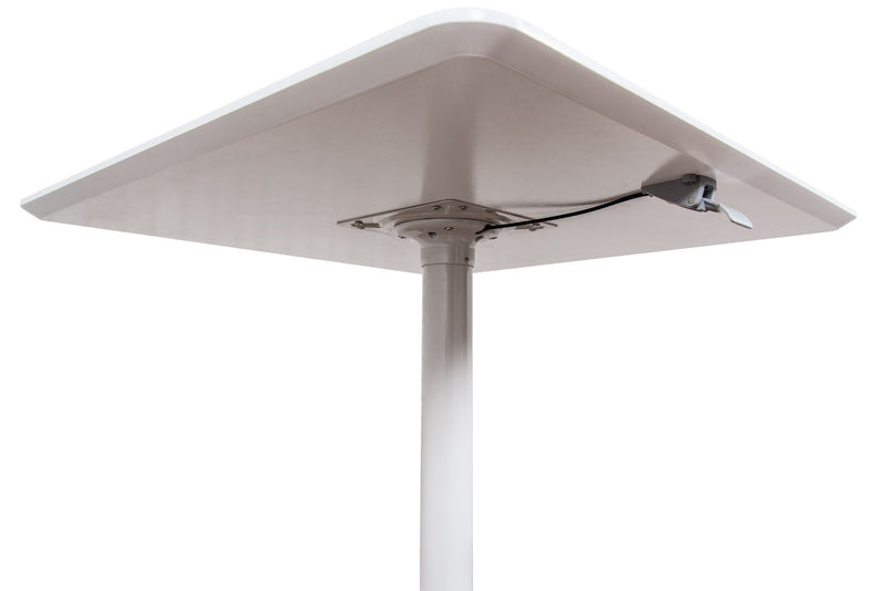 Luxor’s pneumatic height adjustable café tables feature durable construction, a contemporary, easy to clean white finish, and contoured edges making them ideal for business, retail, or educational environments. These multi-purpose square tables smoothly adjust in height with the aid of a pneumatic air cylinder allowing them to be used in seated or standing positions.