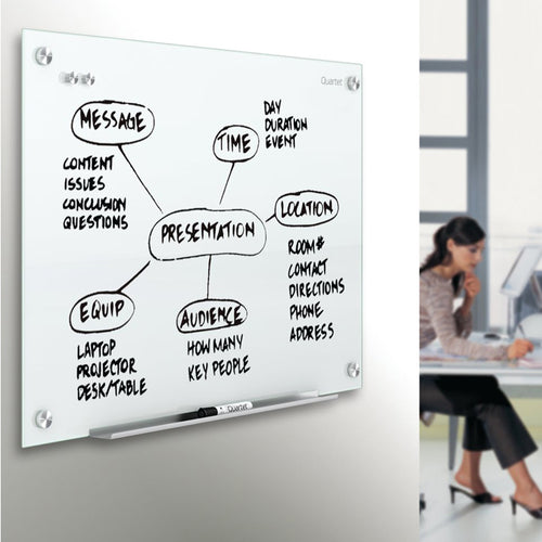 Tempered, magnetic glass boards will not stain or ghost Frameless design blends seamlessly into any environmentWhite glass surface vibrantly shows any color of inkBoards are easy to install with included pass-through mounting hardwareCan be mounted vertically or horizontallyIncludes marker tray and 1 dry-erase marker Available in 5 sizes, and with white or black surface15-year warranty Magnetic Dry-Erase Glass Boards Extremely durable, glass dry-erase boards offer all the benefits of a traditional board with an upscale, modern aesthetic appeal. The magnetic glass surfaces will not stain or ghost, and double as bulletin boards for magnetic posting. Dry-erase markers glide evenly over the board for smooth and clear communication.