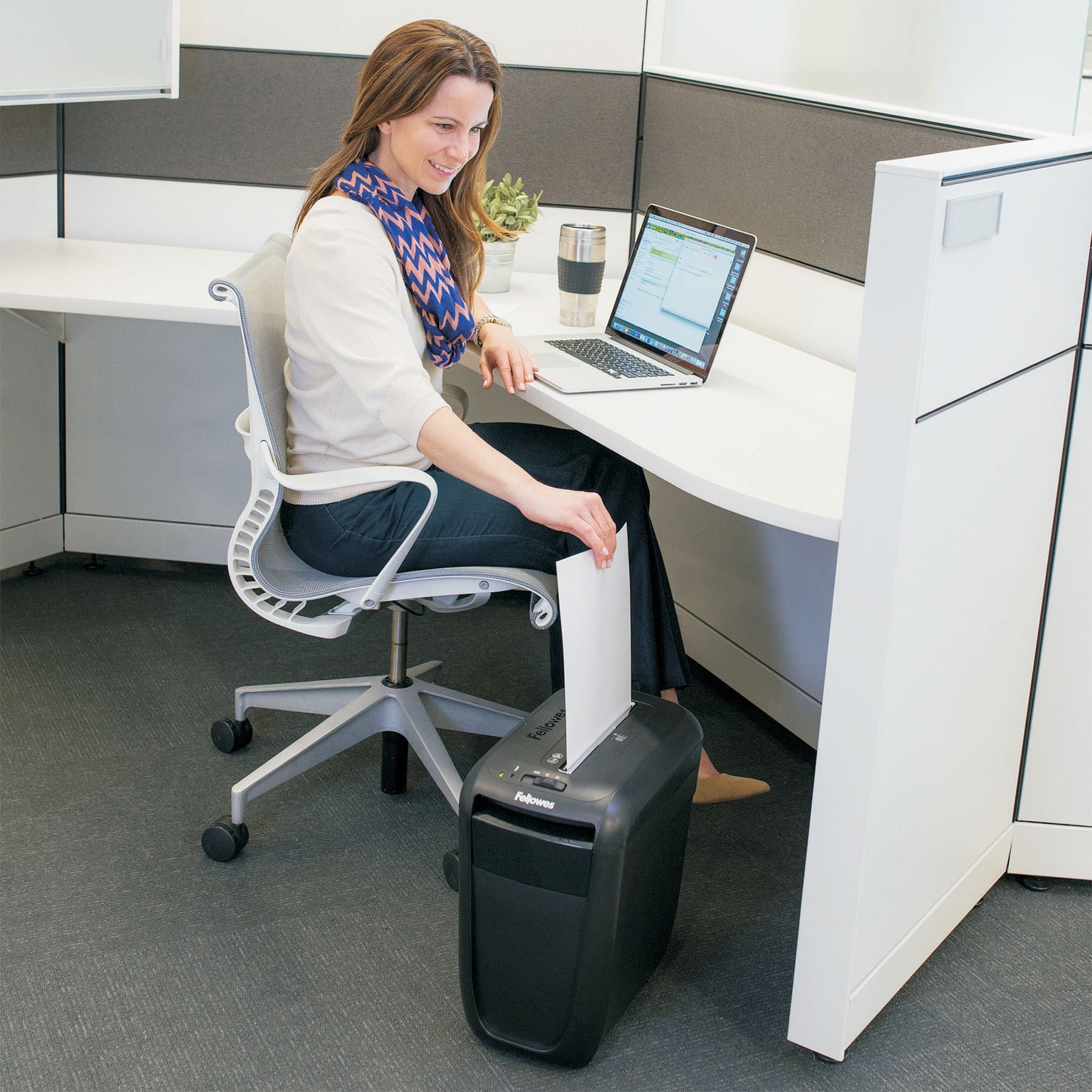 Patented SafeSense® Technology.Shreds ten sheets per pass into cross-cut particles.Slim profile fits neatly under desks.Six gallon bin. The space-saving Powershred® 60Cs cross-cut shredder features patented SafeSense® Technology, which stops shredding when hands touch the paper opening.